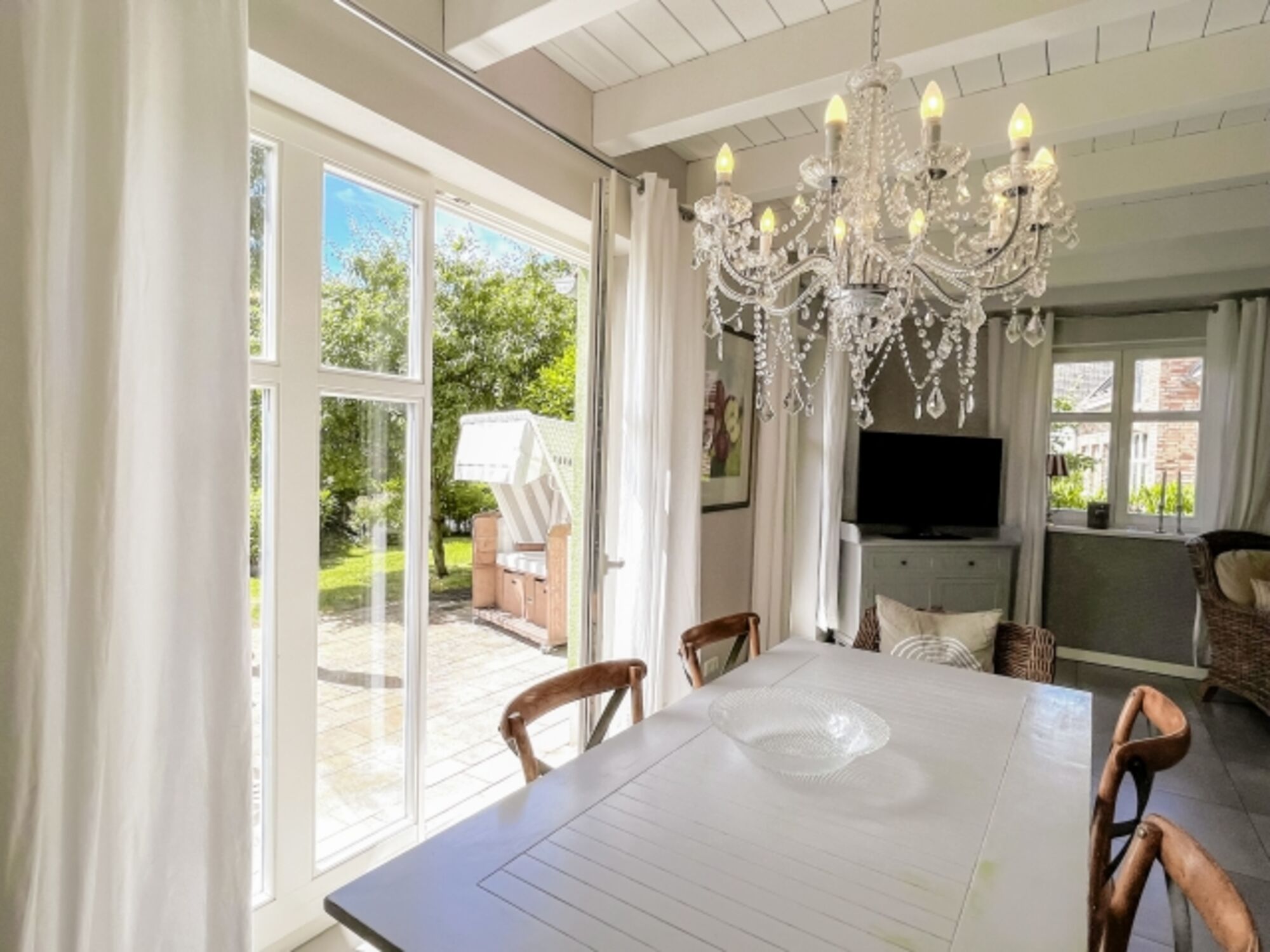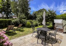 - Große Terrasse mit Strandkorb, Liegestühlen & Grill