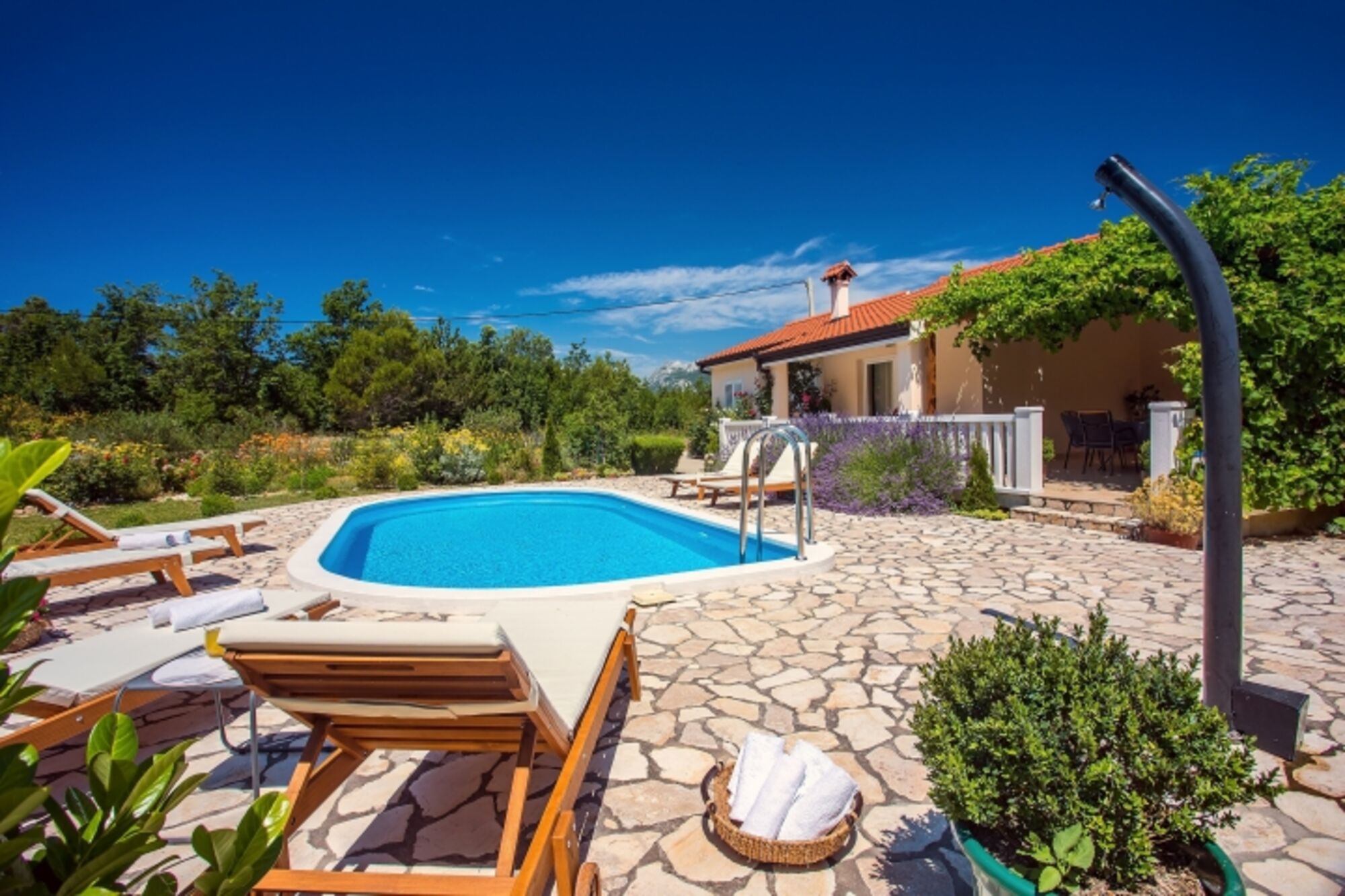 Sie sind nur 12 km von der kleinen, alten, mediterranen Stadt Omiš entfernt, die für seine Piratengeschichte und Sand- und Kiesstrände mit sauberem und warmem Meer, historischen Sehenswürdigkeiten und tollen Restaurants bekannt ist. Auch nur wenige Kilometer entfernt gibt es einen wunderschönen Fluss Cetina, der viele Aktivitäten wie Rafting, Zipline, Kanufahren, Klettern bietet ... Und all das nur 32km weit von der berühmten Stadt Split, Stadt bekannt für seine große Geschichte und viele verschiedene Attraktionen.