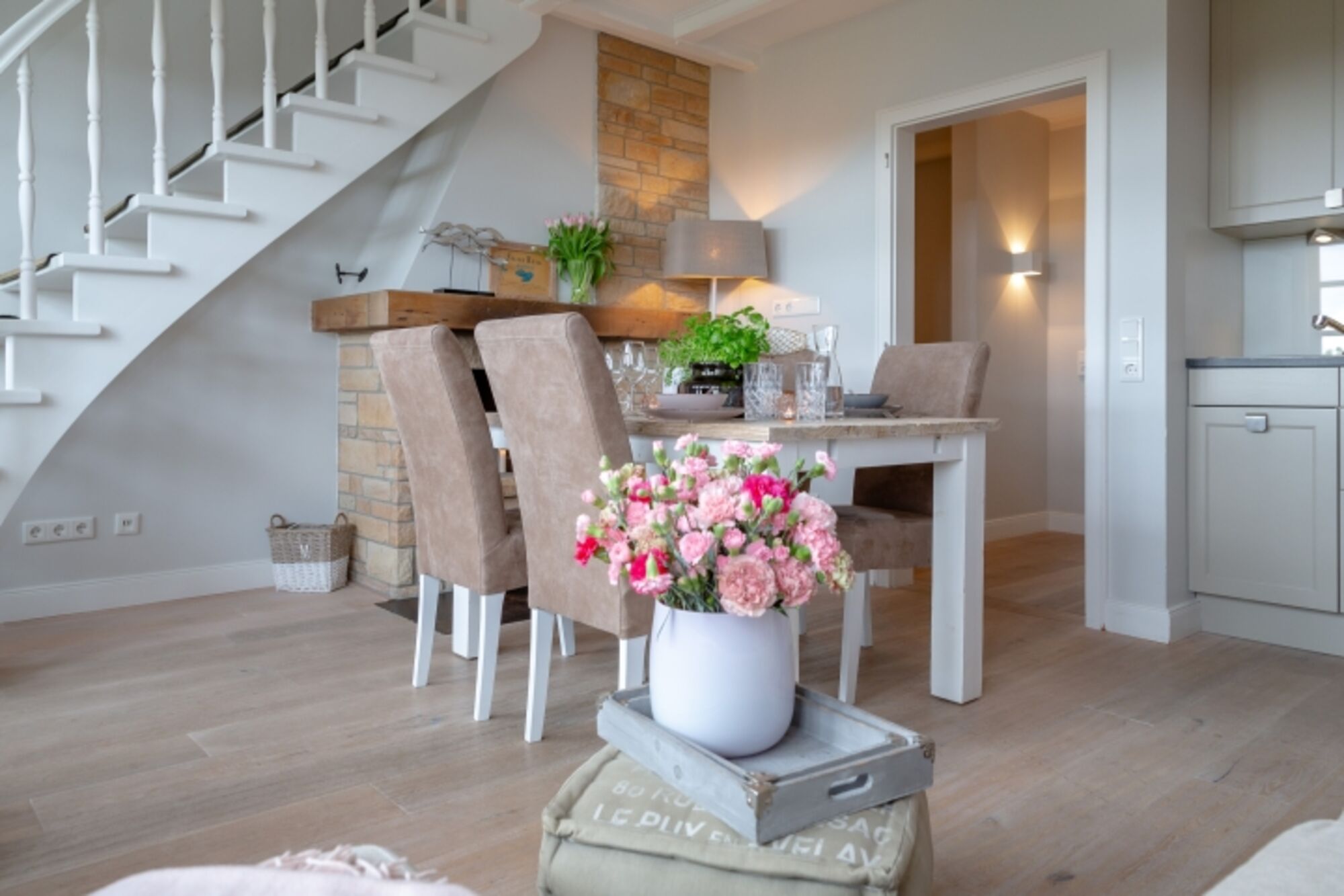 Die gemütliche Wohnung bietet Ihnen ein schönes Nest, um sich im Urlaub rundum wohl zu fühlen. Entspannen Sie sich in geselliger Runde am offenen Kamin oder am schön gestalteten Essplatz, der zum Verweilen einlädt. Die offene Küche ist hochwertig eingerichtet und lädt zur mühelosen Selbstversorgung im Urlaub ein.