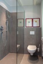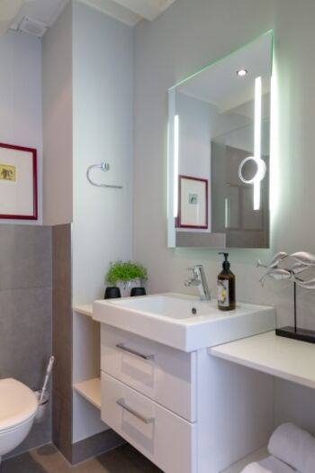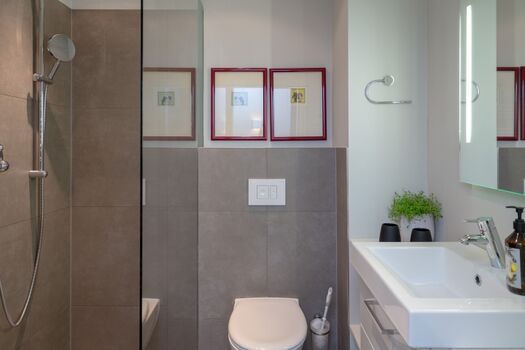 Das helle Badezimmer bietet mit seiner großen Dusche eine kleine Wellness-Oase für Sie.