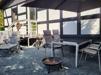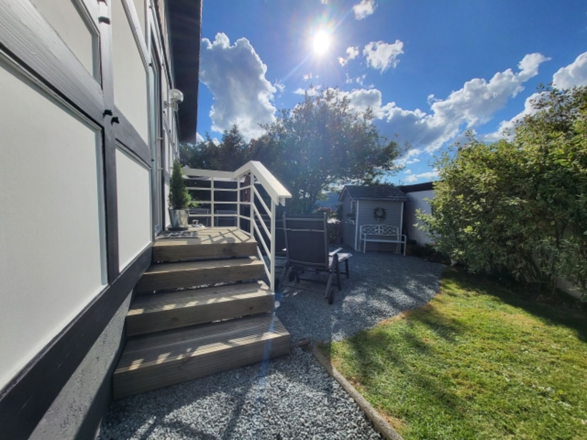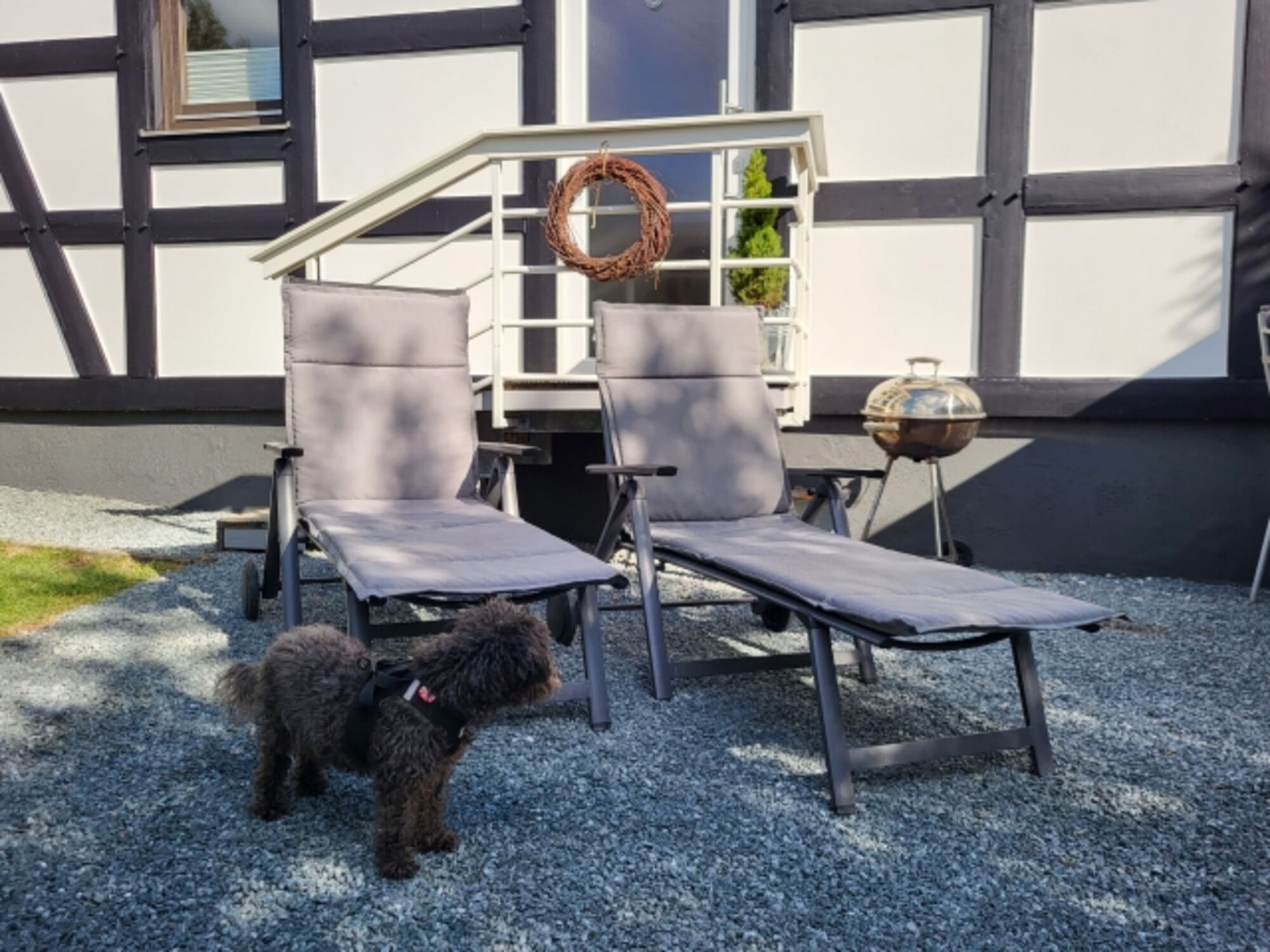 Der Garten gehört ganz Ihnen allein. Er ist hundesicher eingezäunt, sodass Ihre Vierbeiner nach Herzenslust herumstreifen und spielen können. Für entspannte Stunden im Grünen erwarten Sie eine Grillterrasse mit großem Esstisch, bequemen Stühlen und ein kleiner Spielbereich. Sonnenliegen laden dazu ein, einfach loszulassen und den Himmel über sich zu beobachten. Keine Termine in Sicht!