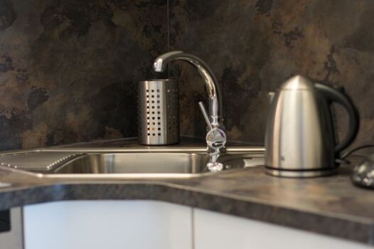 4-Platten Herd, Induktionsherd, Dunstabzugshaube, Kühlschrank mit Gefrierfach, Gefrierschrank, Senseo-Kaffeeautomat, Mixer