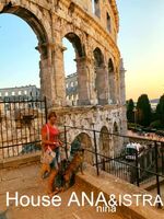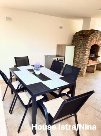 ISTRIEN - Duga Uvala, Nähe Pula... Haus ISTRA... ein charmantes Ferienhaus mit 3 Schlafzimmern, Terrasse und umzäuntem Garten!!! Bis zu 6 Personen, 3 Schlafzimmer (jedes mit Doppelbetten 1,80x2,00. 1,80x2,00, 1,40x2,00), kleine Küche ( Gasherd, Spullmaschine, Kaffeemaschine, Wasserkocher, Toaster...), wunderbares Esszimmer (grosser Kühlschrank mit Gefrierfach, Mikrowelle...), Wohnraum (Eckgarnitur, Sat TV-deutsche Programme), Badezimmer mit Badewanne, Klimaanlage x4, WI-FI, Heizung (Elektroradiatoren)... eingezäunte Terrasse 16m² ( Tisch und Stühle, Sonnenschirm, Liegestühlen, Elektrogrill) und eingezäunter Hof (250m², 1,30-1,60 hoch) mit Grill, Außendusche, Tisch und Stühle, Liegestühle... Es gibt auch 4 Fahrräder, Waschmaschine und Staubsauger, Bettwäsche und Handtücher... Sehr ruhig gelegen, Pinienwald für schöne Spaziergänge ganz in der Nähe... idealer Urlaubsort für entspannte Tage mit Kindern (der nächstgelegene Strand (einige km lang) ist gut geeignet für Kinder mit viel Unterhaltung) oder/und mit Hunden... Strand (es gibt FKK auch) und Restaurant ca 2,2 km (4-5 Minuten mit Auto) entfernt, nächste Einkaufsmöglichkeit ca 5 Minuten zu Fuss... Sehenswerte Städte in der Umgebung: Pula, Medulin, Vodnjan - alle ca 15km entfernt... Und viele andere Möglichkeiten für wundervolle Ausflüge: Inseln Brijuni, Kap Kamenjak, sehenswerte Staedten Rovinj, Poreč, Opatija... aber auch ein Tagesausflug von Pula nach Venedig ist möglich... Willkommen!