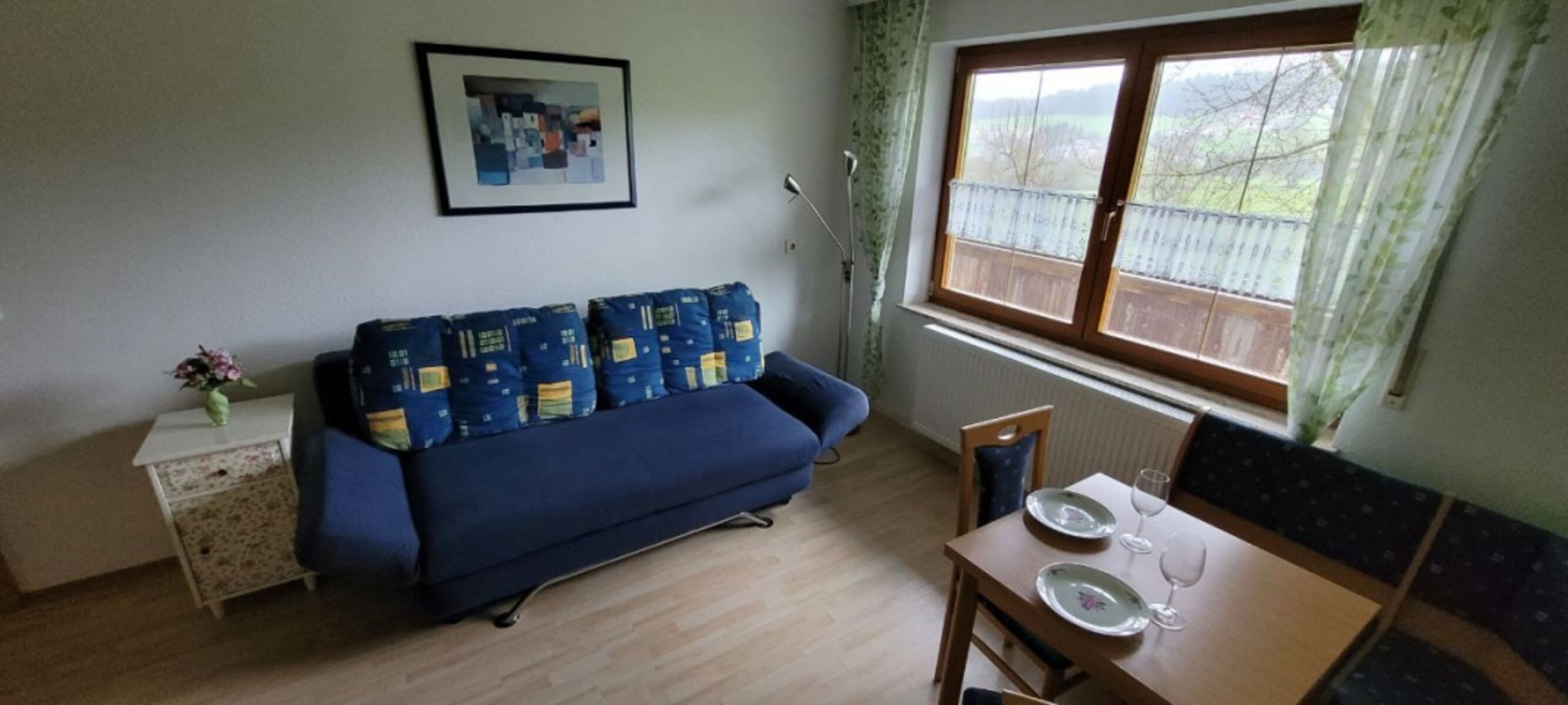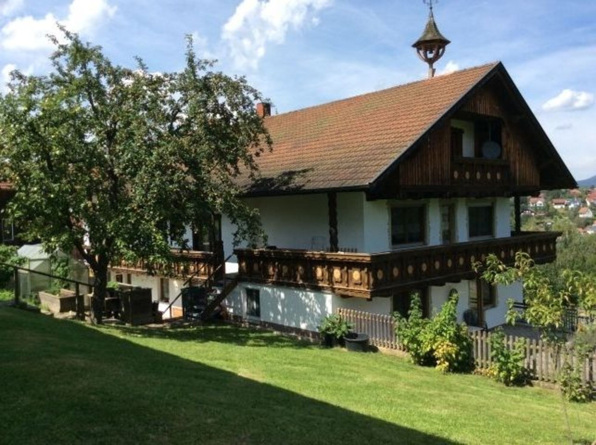 Unsere schöne Ferienwohnung für 2-4 Personen befindet sich etwas außerhalb von Bad Kötzting in Alleinlage mit herrlichem Blick auf die Berge und das Regental. Unmittelbare Nähe zum Kurpark, TCM-Klinik und der Reha -Klinik. Wir bieten Ihnen im 1. Obergeschoss eine schöne Wohnküche und ein Schlafzimmer mit Himmelbett. Die Wohnung hat auf drei Seiten einen Balkon. Von diesem kann man direkt über eine Außentreppe in den Garten bzw. in die Wiese gehen. Hunde sind gerne willkommen. Bei mehr als 2-4 Personen besteht die Möglichkeit ein separates Doppelzimmer mit Dusche/WC dazu zu buchen. In den Wintermonaten wird nicht vermietet. Rufen Sie uns an oder schreiben Sie uns eine Mail, wir freuen uns.